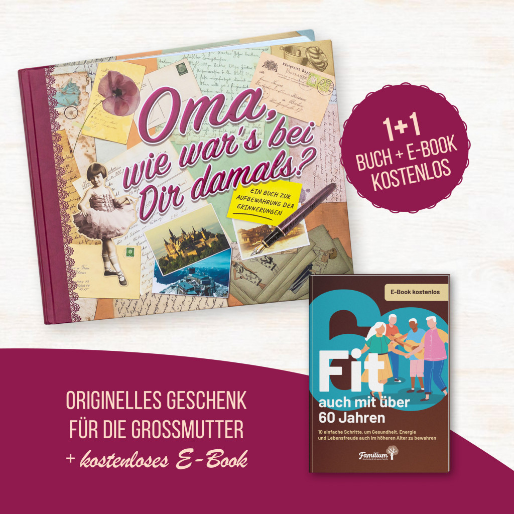 Die Zeit, die wir gemeinsam mit den Eltern und Großeltern verbringen, ist schlicht unersetzlich. Bereiten Sie Ihren Nächsten Freude – wir helfen Ihnen gerne dabei. Verschenken Sie das schöne Buch “Oma, wie war’s bei dir damals?”. Wie schon der Titel verrät, handelt es sich um ein Erinnerungsbuch, das für Großmütter, aber auch für Mütter, gedacht ist, die ihre Erinnerungen und Erlebnisse aus der Kindheit und Jugend, sowie tolle Momente, die sie mit ihren Liebsten verbracht haben, notieren wollen. Man kann Fotos ins Buch kleben, Geschichten niederschreiben und die schönsten Momente, die das Leben so mit sich bringt, festhalten.